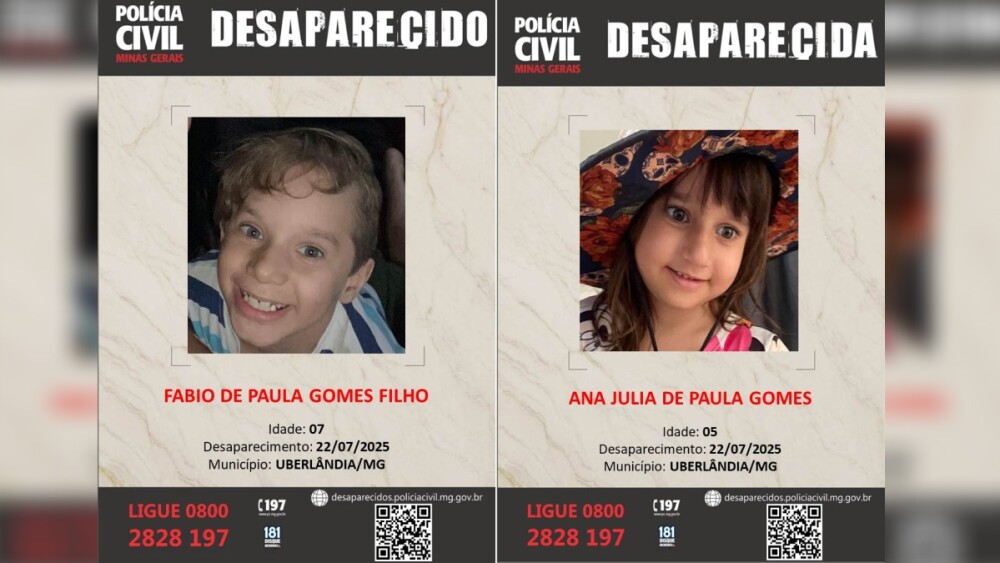 Uma mãe, moradora de Uberlândia, no Triângulo Mineiro, denuncia que o ex-marido fugiu e sumiu com seus dois filhos, de 7 e 5 anos. As “Hoje o que eu mais desejo é as minhas crianças de volta. Estou vivendo uma montanha-russa de turbilhões na minha cabeça. Estou gestante de sete meses. Minha cabeça está bastante perturbada. O meu único apelo é que quero minhas crianças de volta. É só o que eu preciso”. Klissia Santos, mãe das crianças desaparecidas