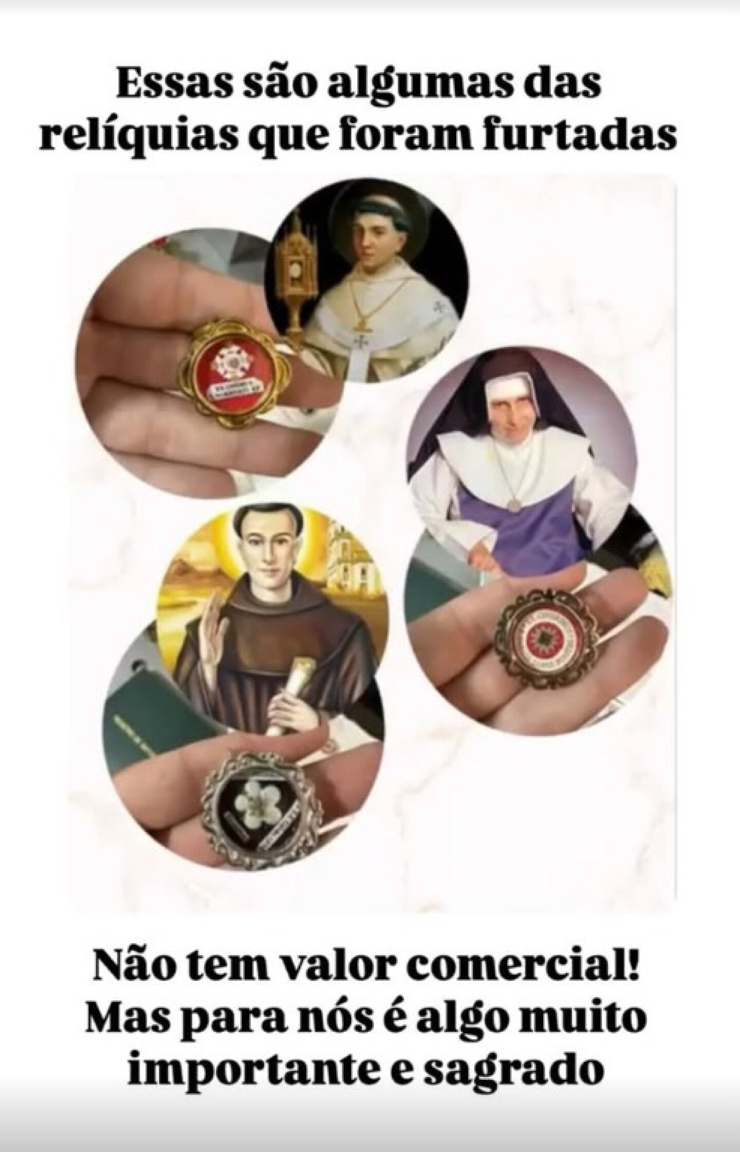 “As relíquias não possuem valor comercial, mas para nós, católicos, são um bem de fé inestimável. Representam a presença espiritual dos santos em nossa comunidade e são sinal de graça, intercessão e comunhão com a Igreja de todos os tempos”, diz um trecho da nota.