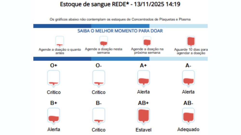 Na próxima semana, pelo menos 20 cirurgias estão previstas. Os médicos explicam que o fim do ano é um período especialmente crítico, pois aumentam os acidentes e diminuem as doações de sangue. Em média, cada cirurgia requer ao menos duas bolsas de sangue por paciente, o que pressiona ainda mais os estoques dos hemocentros.